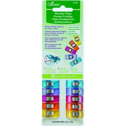 Clover Wonder Clips Ass. farver 10 stk er et uundgåeligt værktøj for enhver, der arbejder med patchwork og syprojekter. Disse klips fra Clover tilbyder en praktisk løsning til at holde stofstykker sammen uden at skade dem, som det kan ske med traditionelle knappenåle.