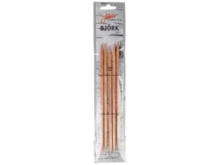 Disse strømpepinde er ikke kun praktiske men også æstetisk tiltalende. Birketræets naturlige skønhed giver dem et unikt udseende, der skiller sig ud i dit strikketilbehør. Den korte længde sikrer, at du nemt kan manøvrere pinden i dit arbejde uden risiko for at maskerne glider af.