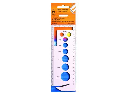 Pony Pindemål med kniv i plastik er et uundgåeligt værktøj for strikkeentusiaster, der ønsker at få præcise målinger af deres strikkepinde. Dette produkt er designet til at gøre det nemt at finde den rette størrelse på dine større strikkepinde, hvilket sparer tid og frustration under dit strikkeprojekt.