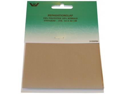 Strygemærke/Reparationslap Polyester/Bomuld Beige 10x40cm – 1 stk er et uundgåeligt redskab til alle, der ønsker at forlænge levetiden på deres tøj. Dette strygemærke fra VJ Green, som findes hos Rito.dk under kategorien Håndarbejde, Strygemærker og Reparationsmærker, er ideelt til reparation af revner og huller i beklædning.